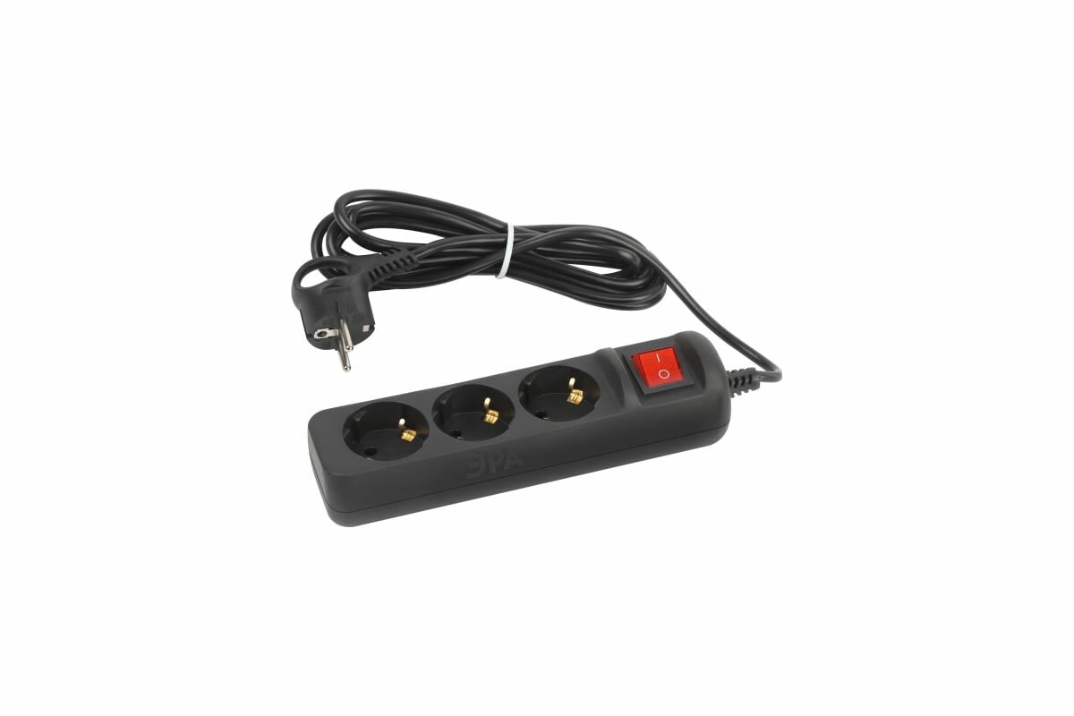 Эра Б0057728 Удлинитель электрический UX-3es-3m-B с заземлением с выключателем 3 розетки 3 м ПВС 3x0,75мм2 10А черный