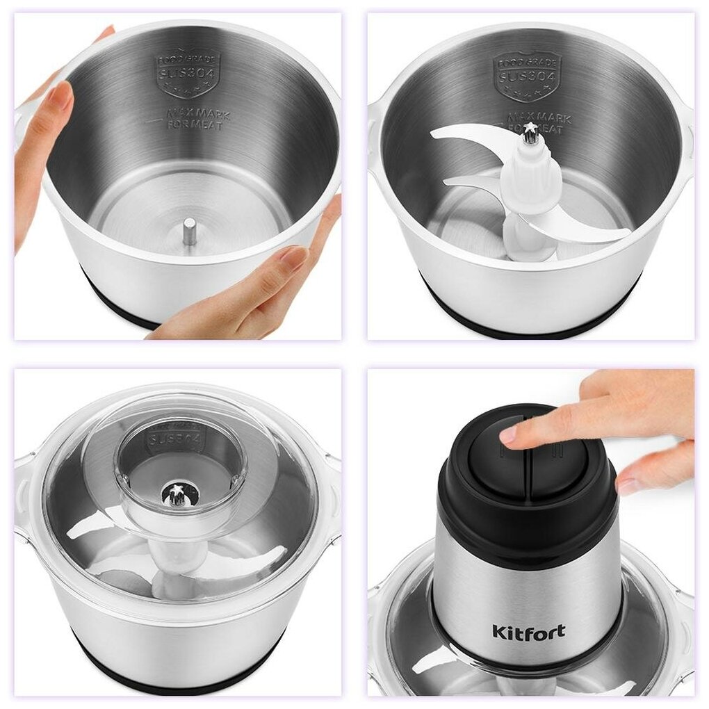 Измельчитель Kitfort КТ-3024, нержавеющая сталь, 350 Вт, 2 л, 2 скорости, сталь