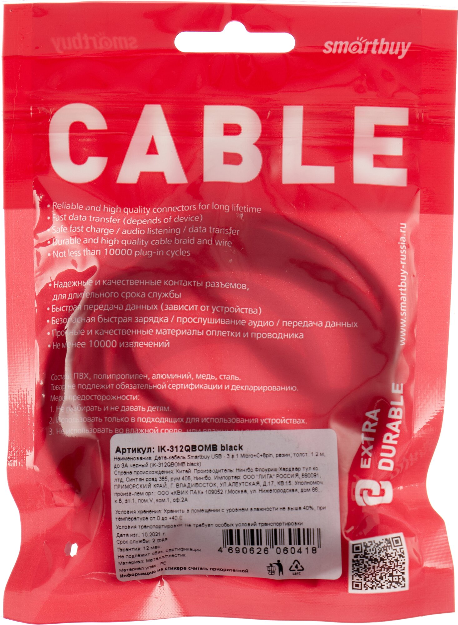 Ниже Вы можете прочитать отзывы на Дата-кабель Smartbuy USB - 3 в 1 Micro+C+8pin, резин, толст. 1.2 м, до 3А черный, ознакомится с подробными характеристиками, посмотреть интересные обзоры и фотографии на Дата-кабель Smartbuy USB - 3 в 1 Micro+C+8pin, резин, толст. 1.2 м, до 3А черный.