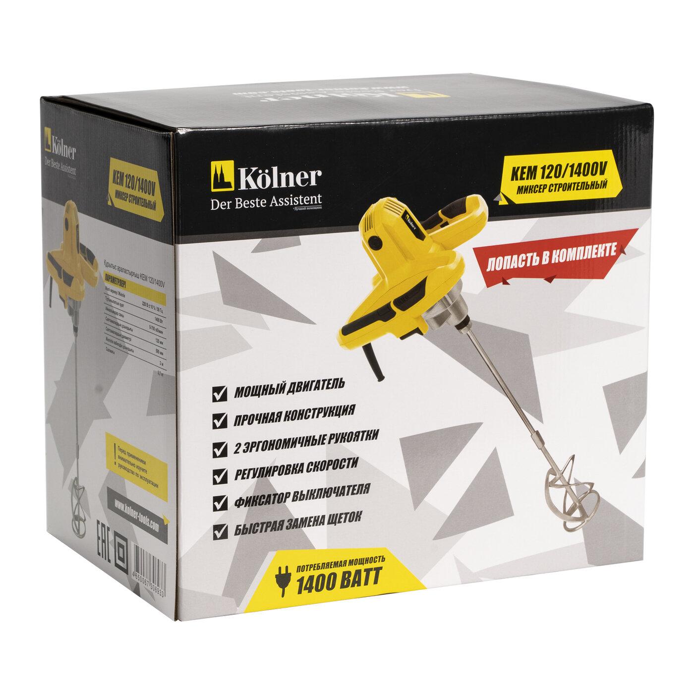 Строительный миксер Kolner KEM 120/1400V, 1400 Вт желтый/черный интересное:
