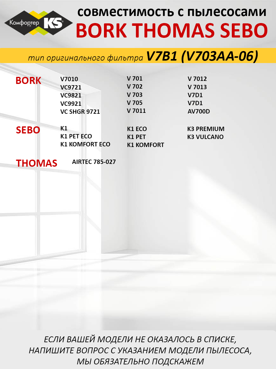 Фильтр HEPA Komforter для пылесосов BORK:, тип V7D1 интересное: