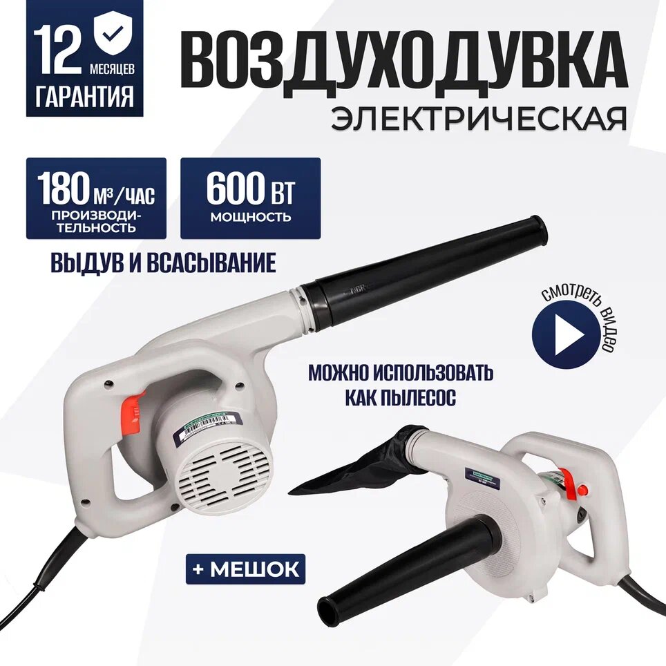 Воздуходувка / Воздуходувка для компьютера / Воздуходувка электрическая / Ветродуйка / Садовый пылесос / Electrolite ВУ-300EL ( Мешок для сбора мусора, ручная, вихревой вентилятор пылесос, 600 Вт, 180 м3/ч)