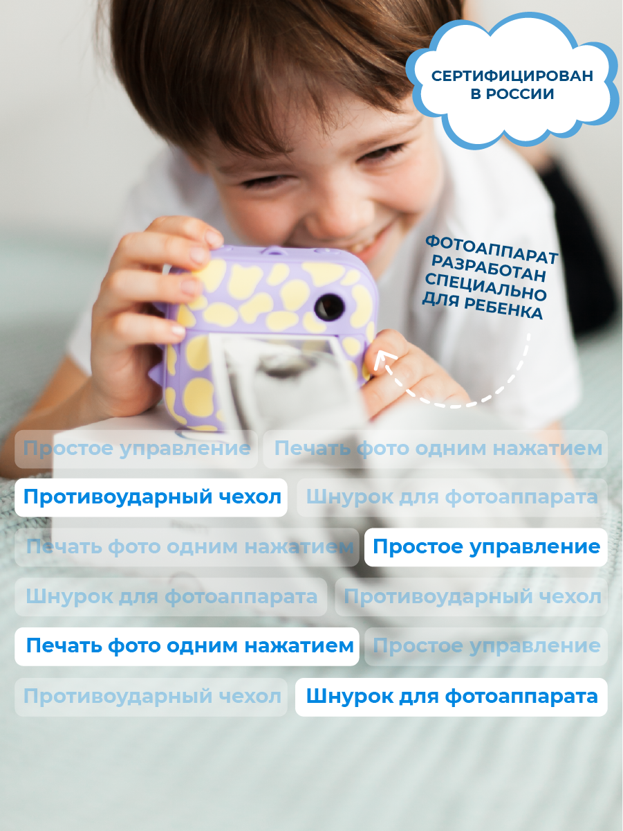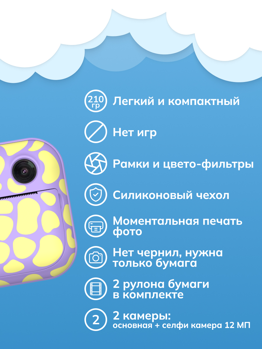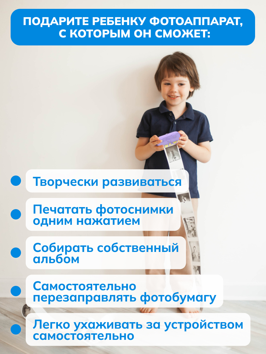 Детский фотоаппарат моментальной печати LUMICUBE Lumicam DK04, фиолетовый