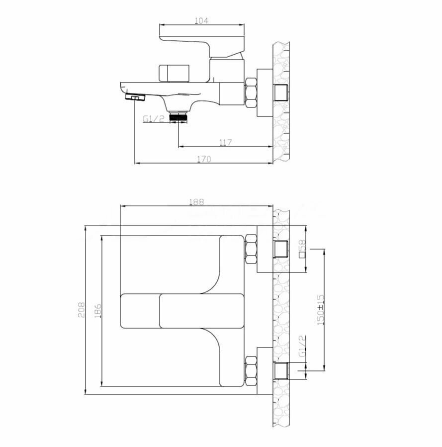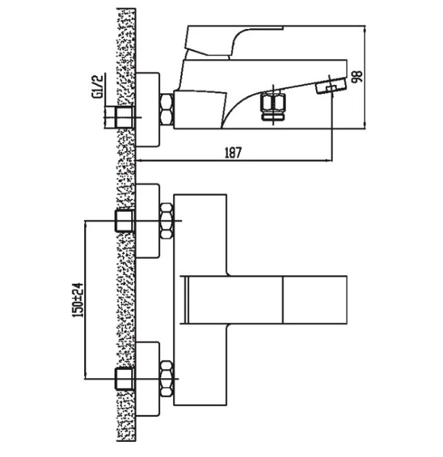Смеситель для ванны/душа ESKO Berlin BR 54 настенный, однозахватный, короткий излив, цвет: хром