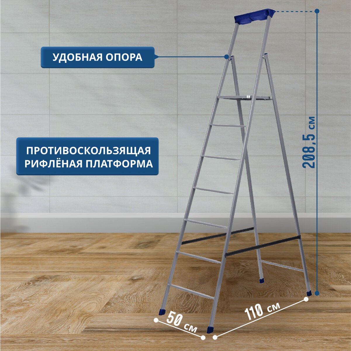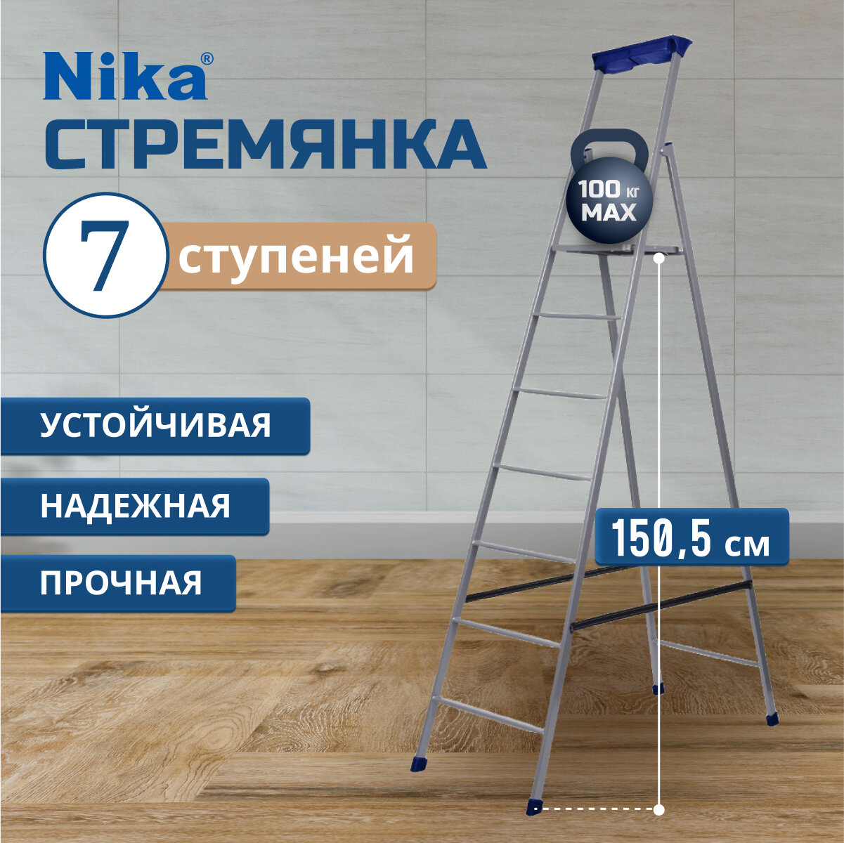 Nika Стремянка Nika СП7, высота до рабочей площадки 1510 мм, 7 ступеней