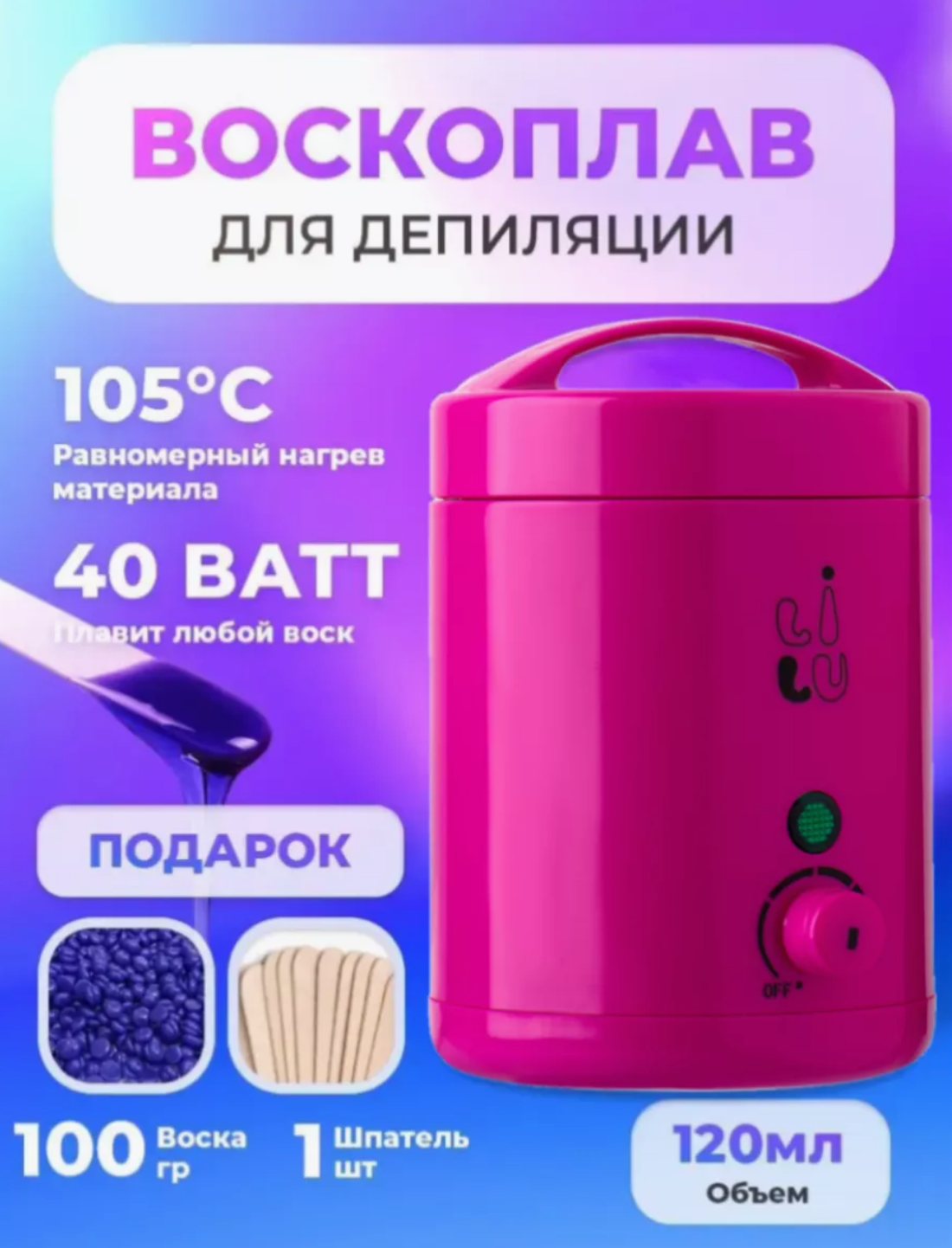 LILU Воскоплав мини для депиляции баночный Ashley, разогреватель воска сиреневый, 120 мл интересное: