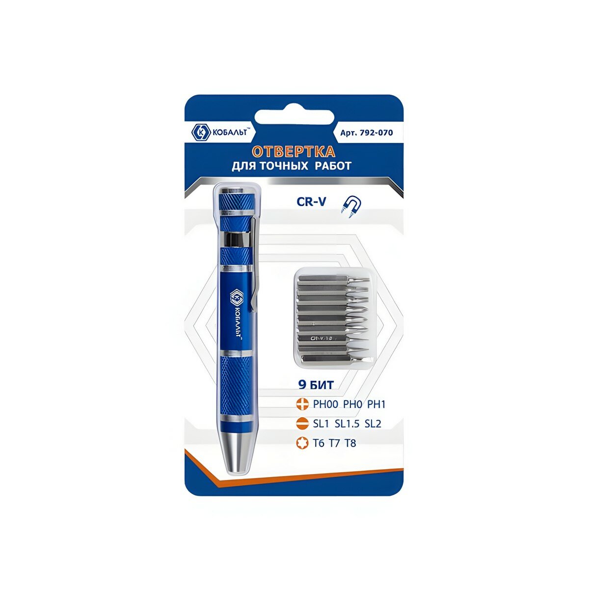 Отвертка для точных работ с набором бит 9 шт. Кобальт 792-070