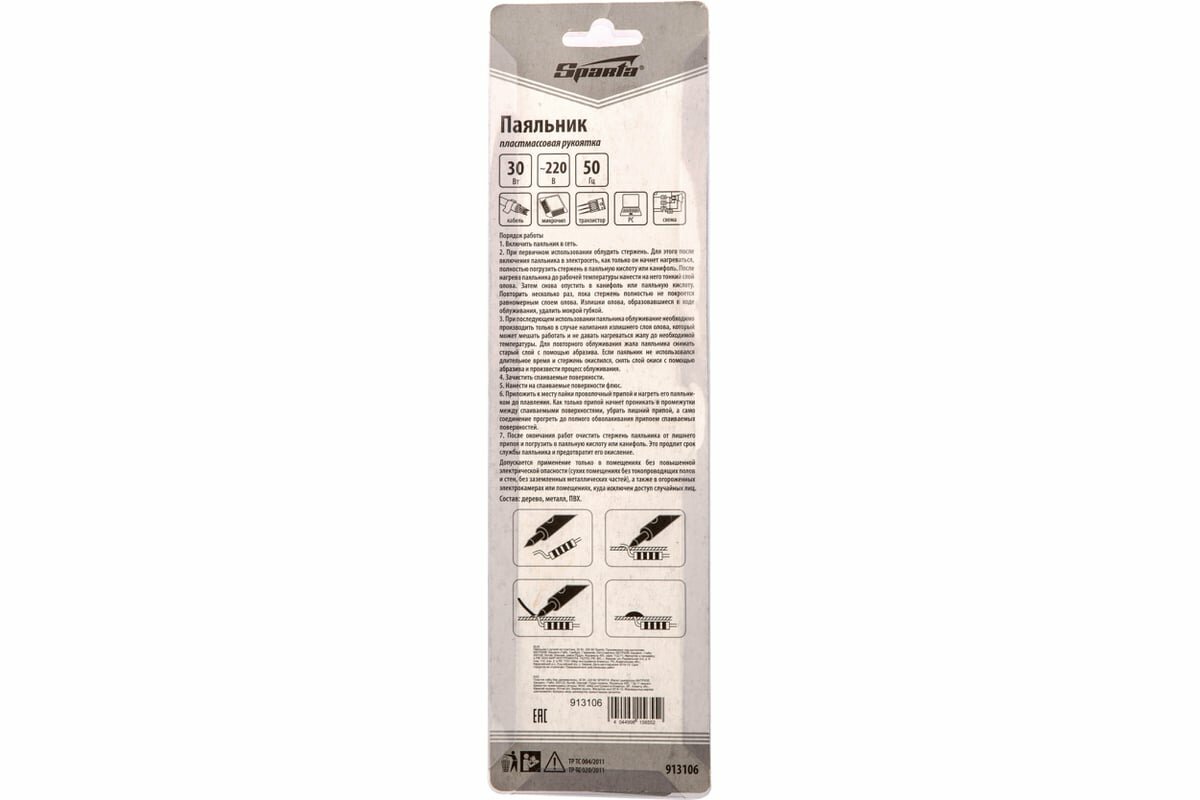 Паяльник с ручкой из пластика SPARTA 913106, 30 Вт, 220 В