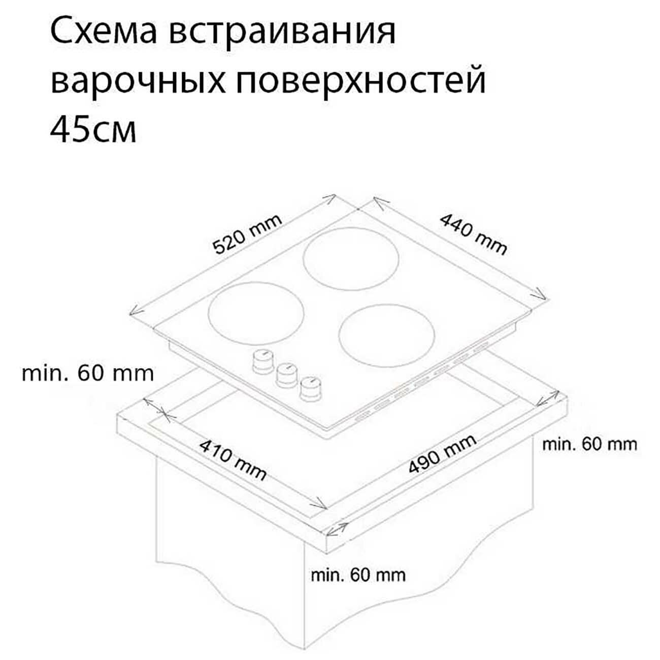 | Общее количество конфорок | 3 |