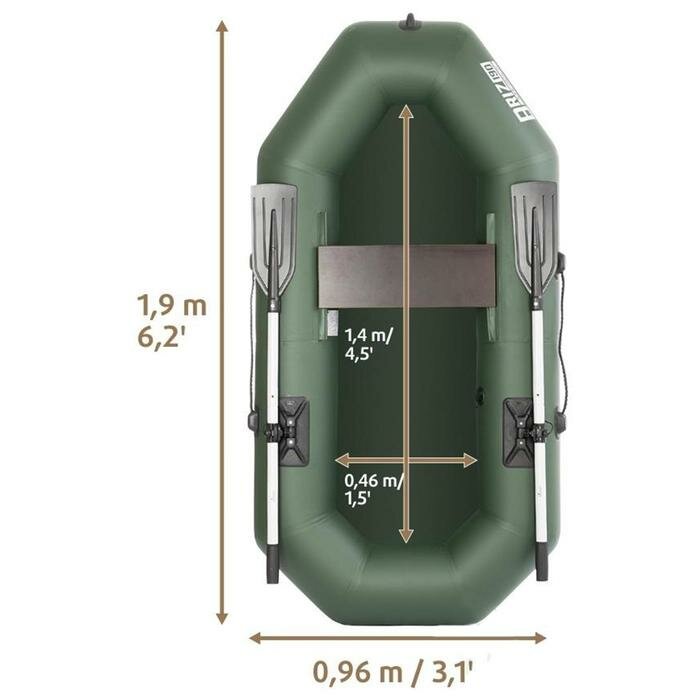 Лодка "Бриз" 190 с веслами, цвет зеленый