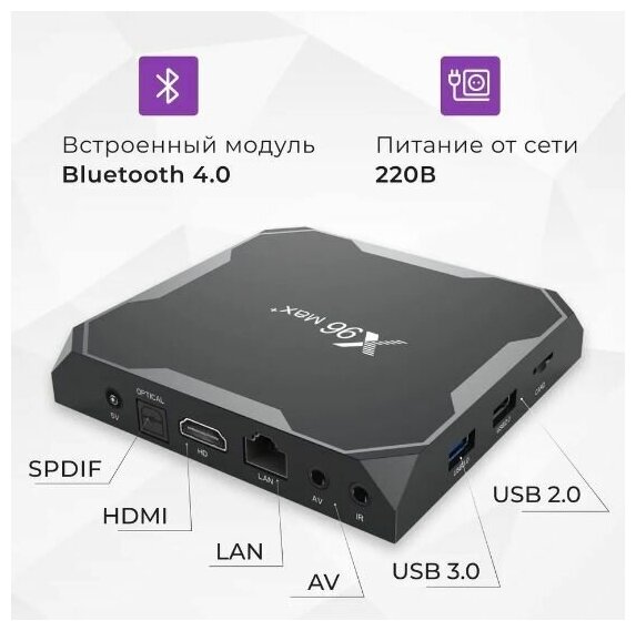 Андроид приставка X96 Max+ 4G+32G BT+WiFi 2,4Ghz, Android 9.0 интересное: