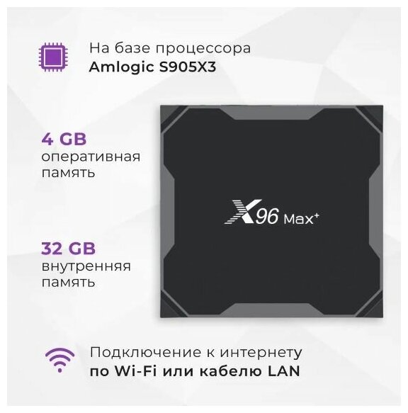 Купить Андроид приставка X96 Max+ 4G+32G BT+WiFi 2,4Ghz, Android 9.0