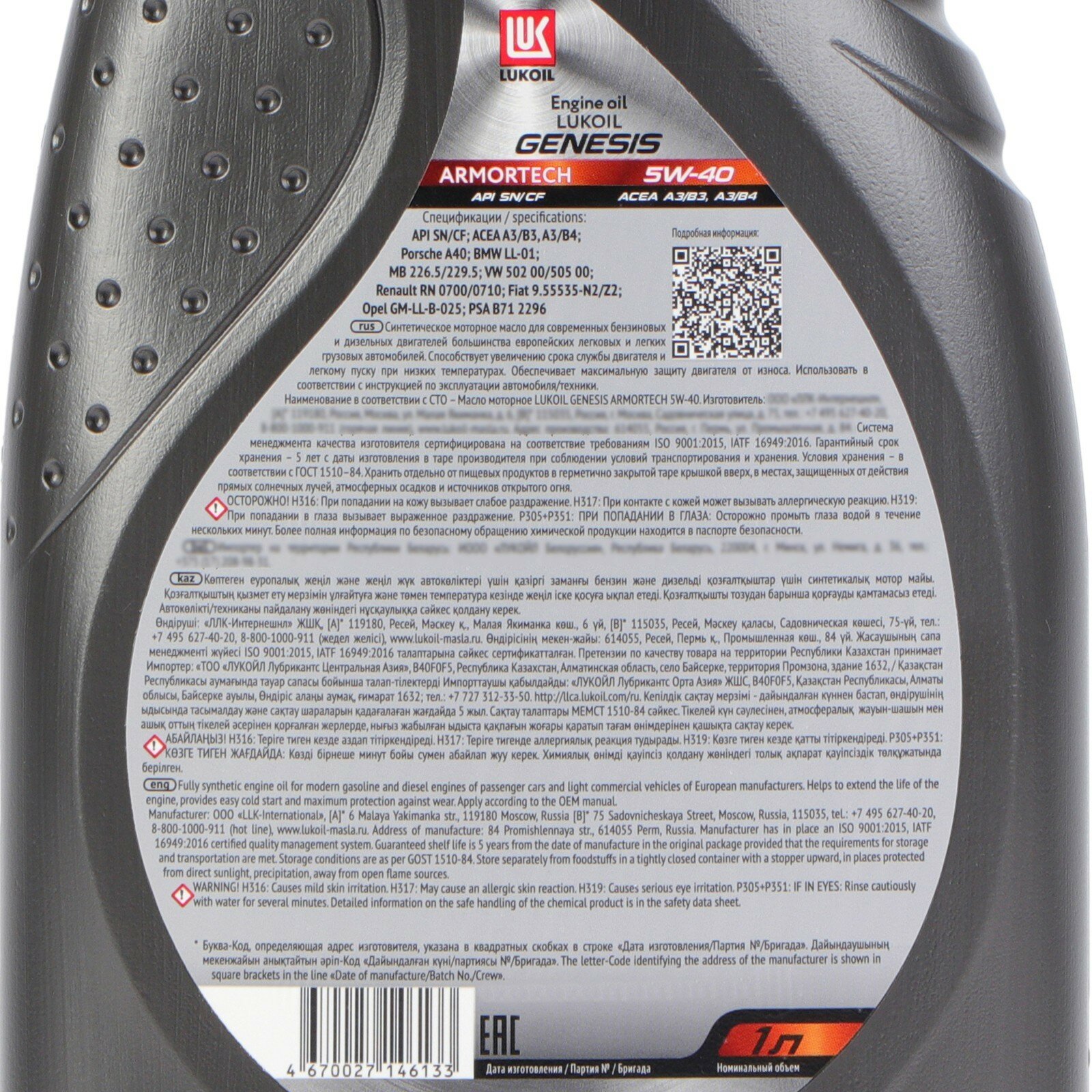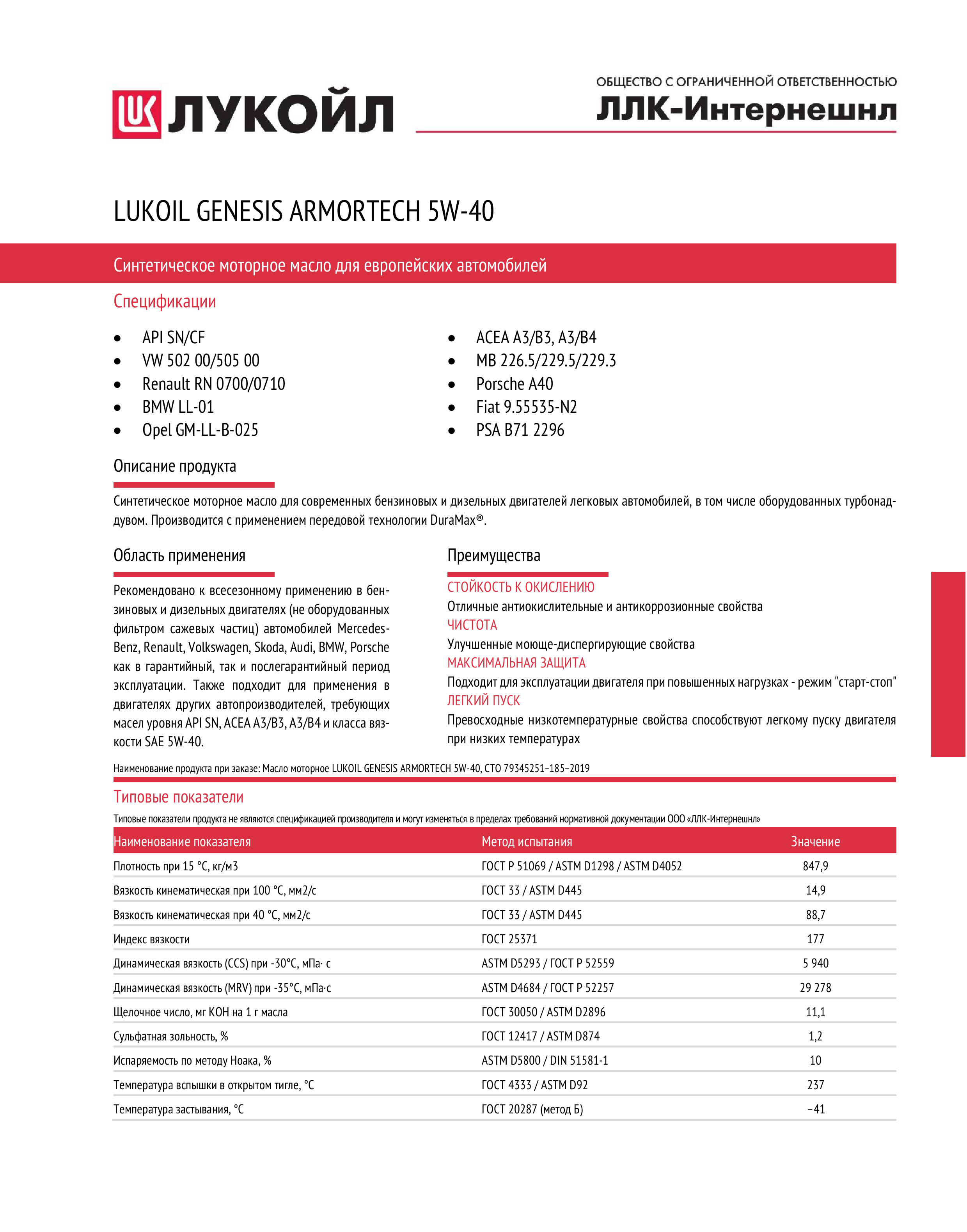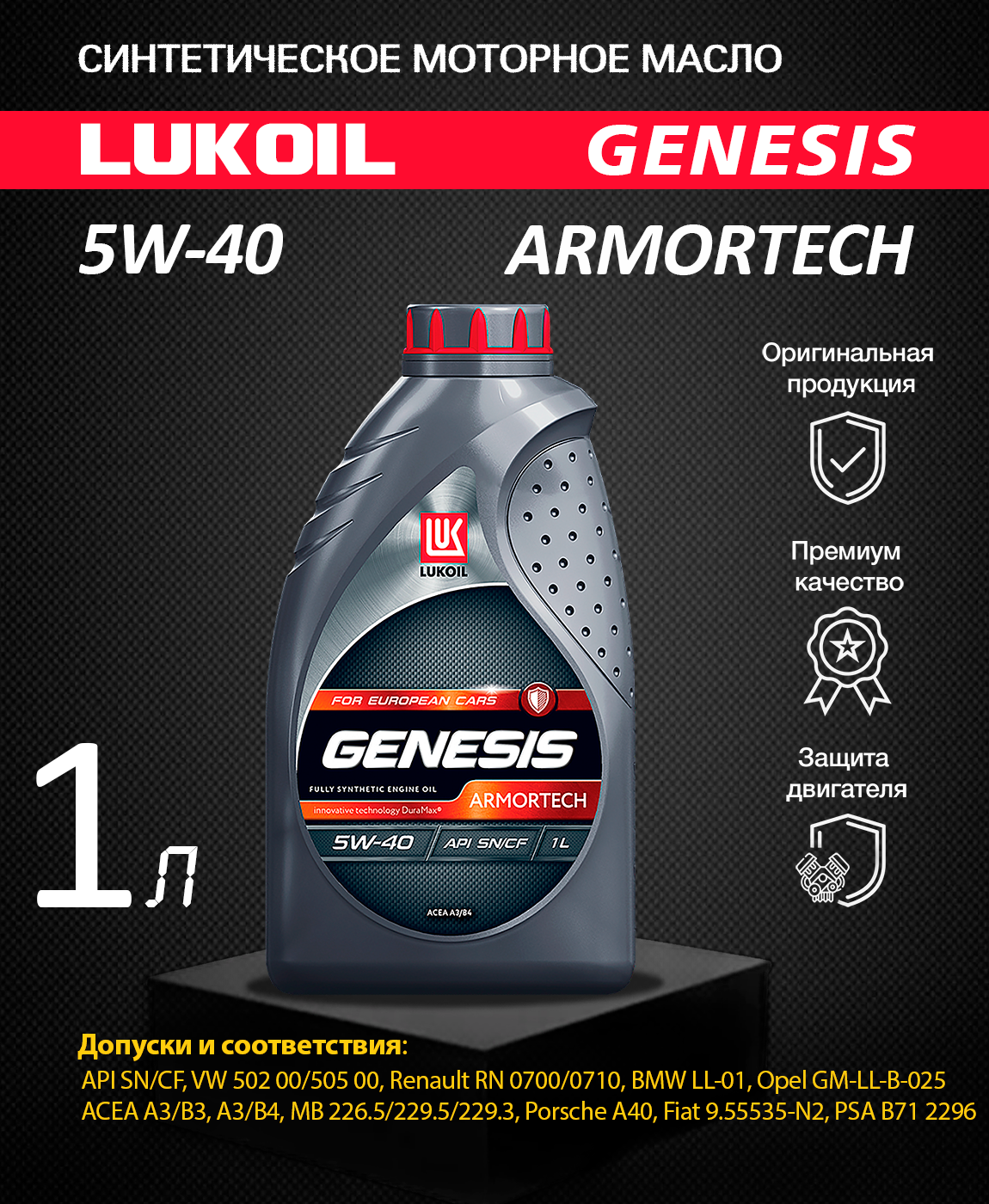 Синтетическое моторное масло ЛУКОЙЛ Genesis Armortech for European Cars 5W-40, 1 л интересное: