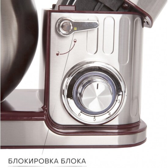 Планетарный миксер Pioneer MX330 wine maroon с LED-индикацией, 6 скоростями, импульсным режимом, 3 насадками и чашей объемом 6 л, 1300 Вт