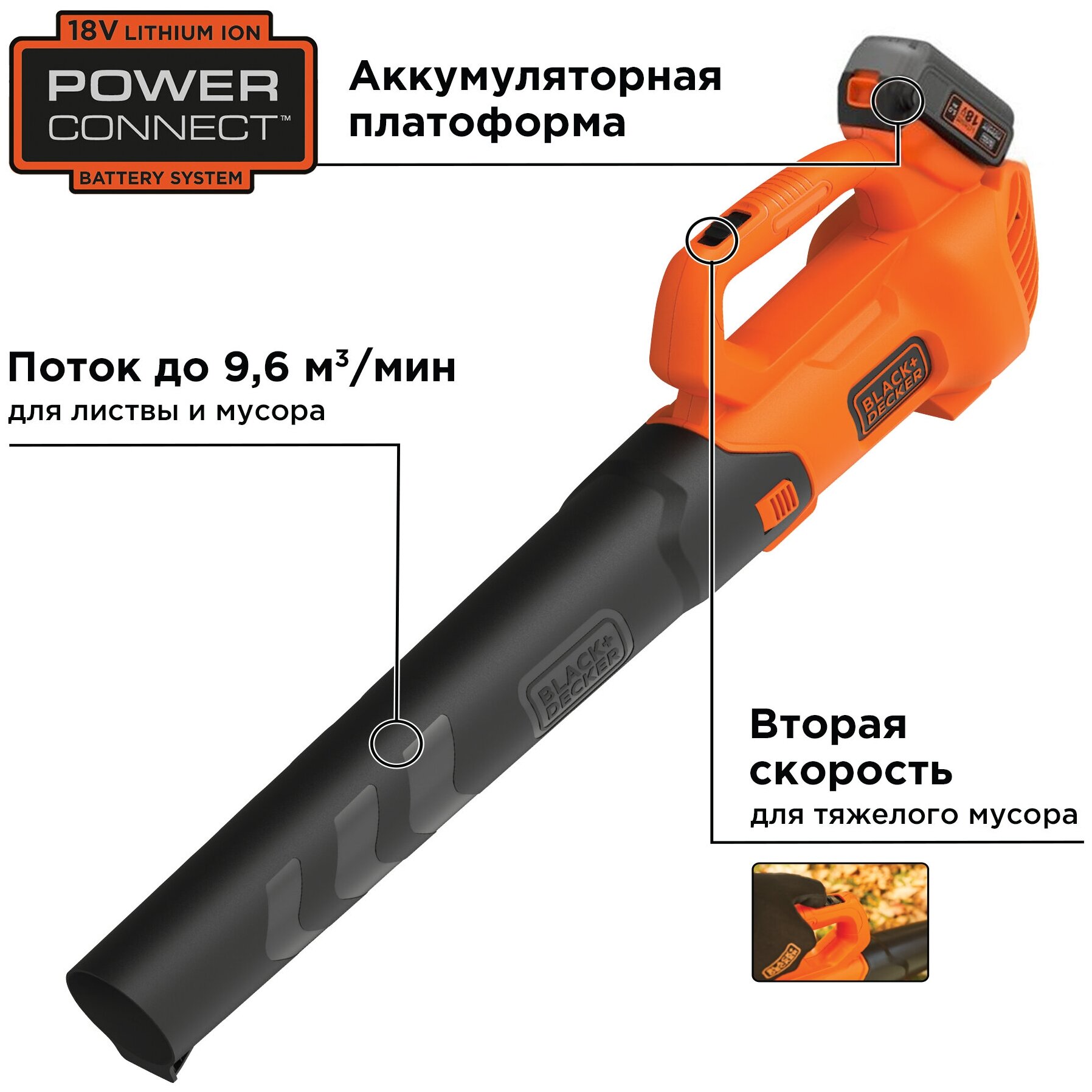 Воздуходувка аккумуляторная Black+Decker Power Connect 18В (BCBL200L-QW) 18В Li-Ion 1 АКБ и ЗУ интересное: