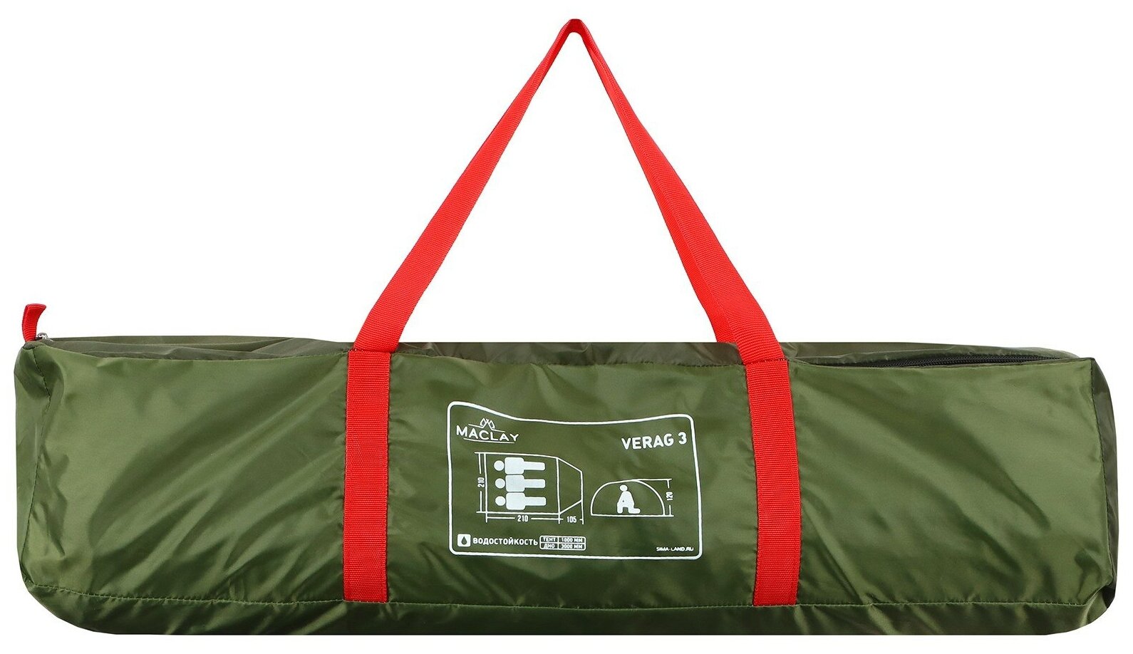Купить Палатка Maclay "VERAG 3", туристическая, размер 330 х 210 х 120 см, 3-местная, двухслойная, цвет хаки
