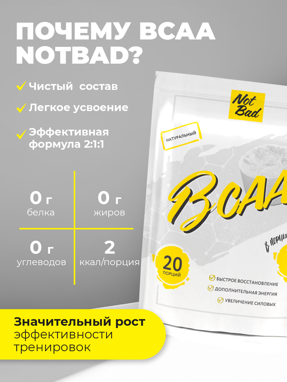 Аминокислоты ВСАА NotBad BCAA 2:1:1, 200 гр, вкус Натуральный (без вкуса), БЦА интересное: