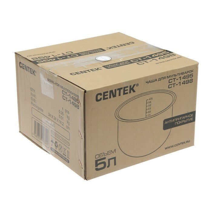 Чаша для мультиварок Centek CT-1495/1498 <5 литров> алюминиевая, антипригарное покрытие интересное: