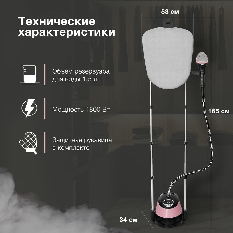 Отпариватель напольный Hyundai H-US02543 1800Вт розовыйчерный интересное: