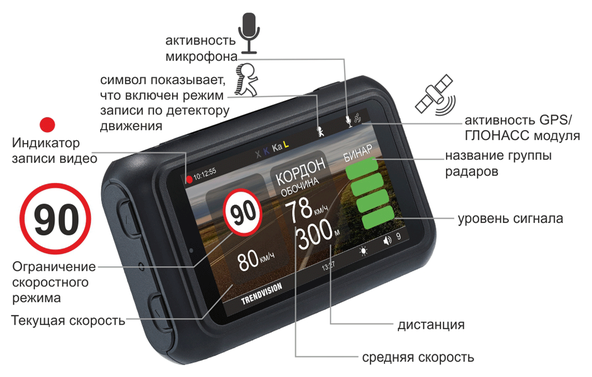 Видеорегистратор с радар-детектором TrendVision Hybrid Signature EVO PRO GPS, черный интересное: