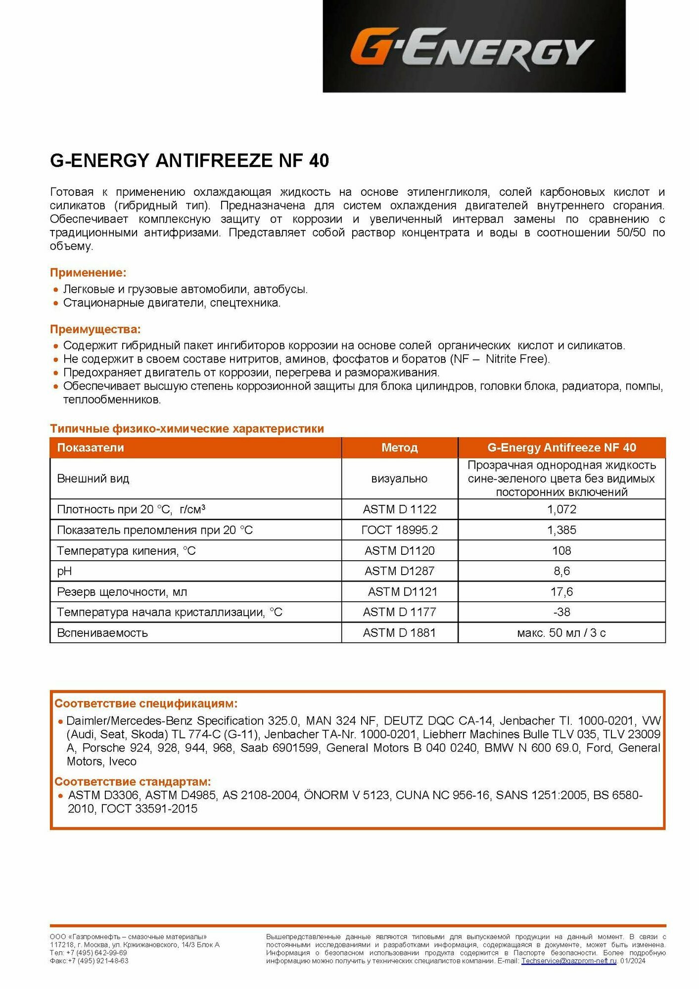 GAZPROMNEFT 2422210119 ОЖ G-ENERGY ANTIFREEZE NF 40 5 KG, фасовка 5 КГ