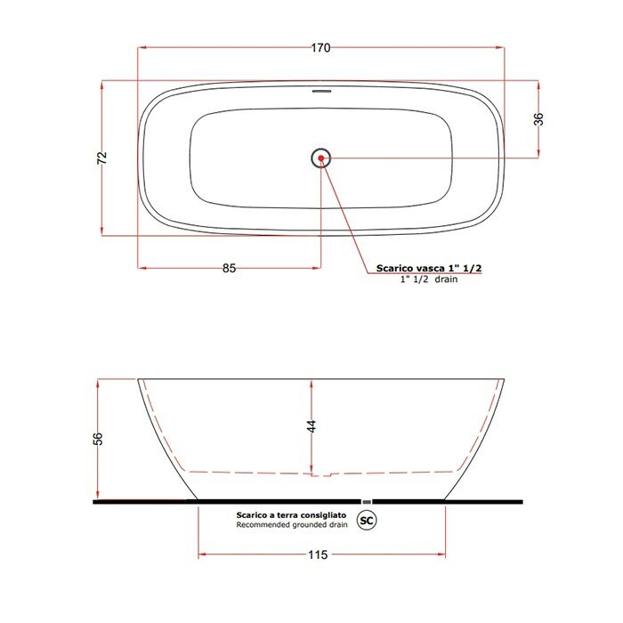 Ванна из искусственного камня Gruppo Treesse Brio V297BL 170х72, цвет белый блестящий