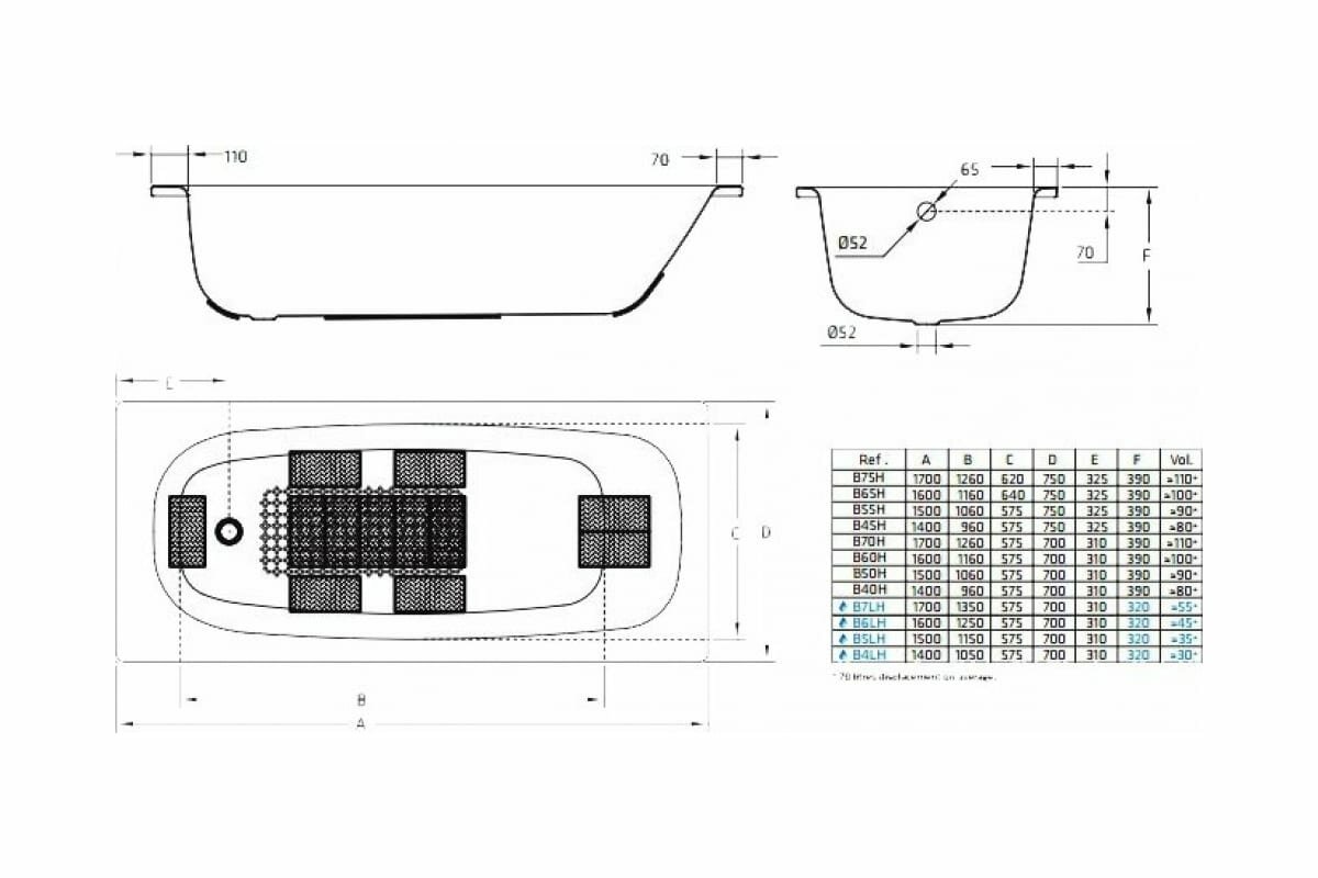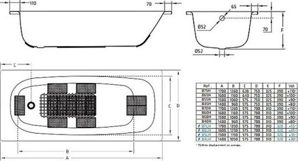 Ванна BLB UNIVERSAL HG 170х70см, 3.5 мм (B70HTH001 handles) с шумоизоляцией с отв. для ручек интересное: