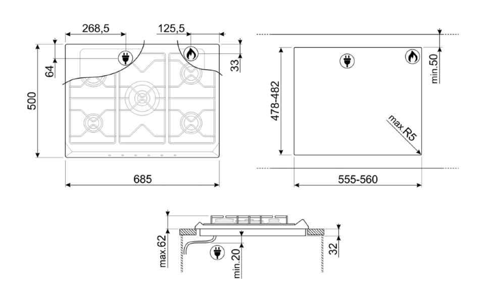| Ширина для встраивания | 56 см |