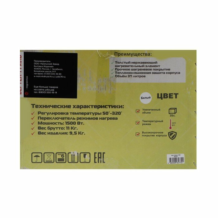 Мини-печь"чудо Пекарь" Эдб-0128, 1500 Вт, 39 л, белая Чудо Пекарь 9177576 .