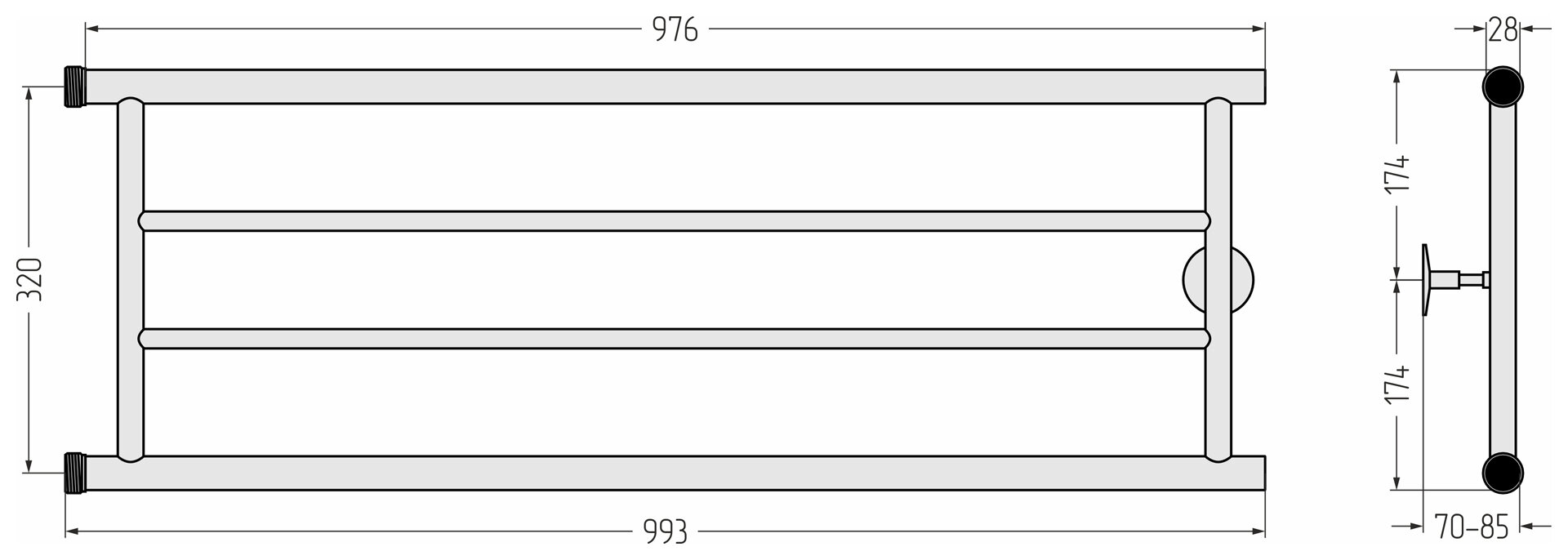 Полотенцесушитель водяной Стилье Минор 0600 320х1000 резьба сгон 1"