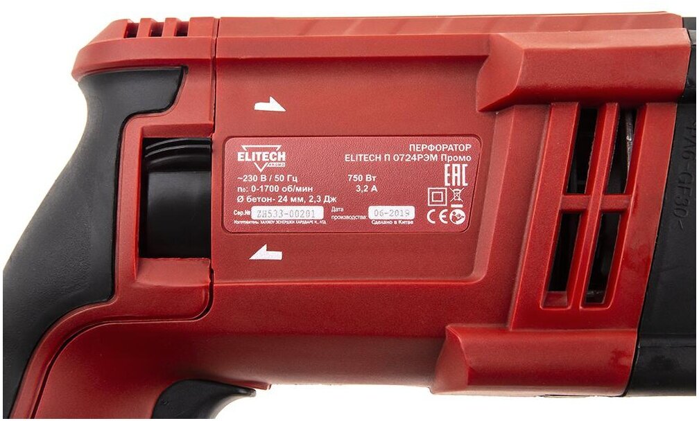 Перфоратор Elitech П 0724РЭМ Промо, 750 Вт, SDS+, 3реж, 2.3 Дж, 0-6100 уд/мин, 2.7кг, кейс Elitech 3