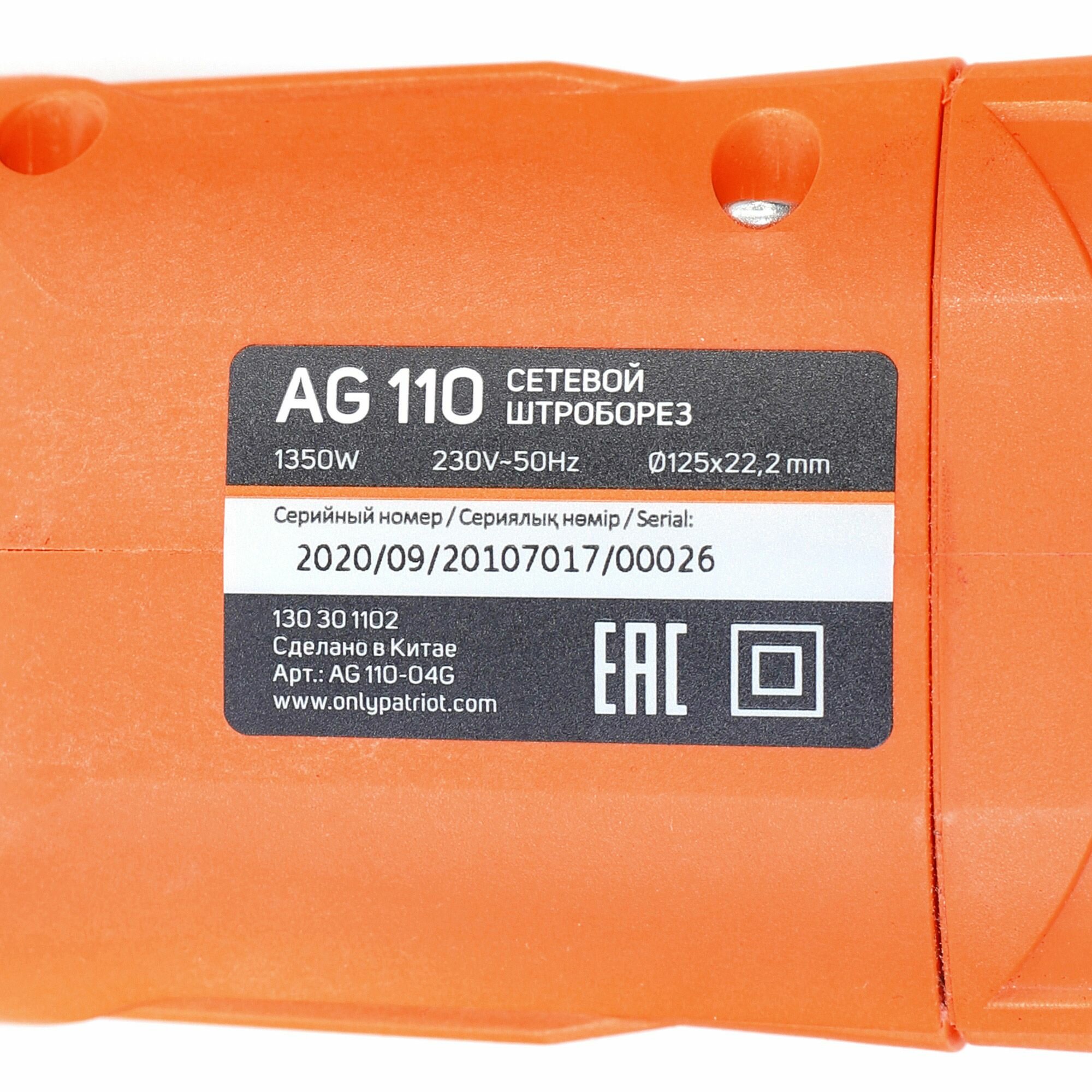 Штроборез Patriot AG 110 9000об/мин 1350W оранжевый/черный ДА