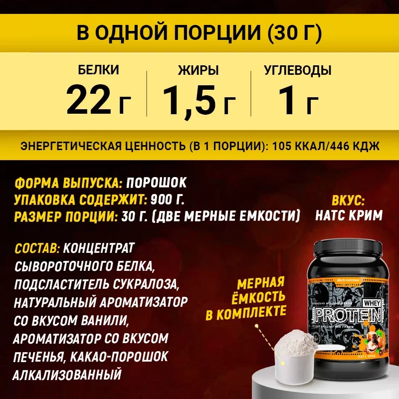 Купить Специализированный пищевой продукт для питания спортсменов "Вэй протеин 100%" ("Whey protein 100%") банка 0,9 кг со вкусом "Натс Крим"