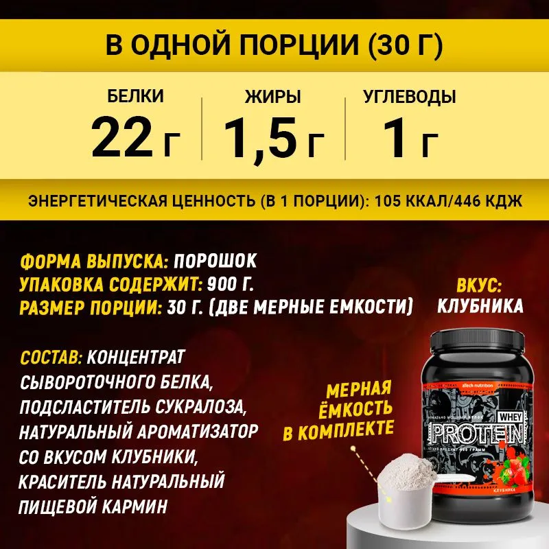 СохранитьСпециализированный пищевой продукт для питания спортсменов "Вэй протеин 100%" ("Whey protein 100%") банка 0,9 кг со вкусом "Клубника" интересное: