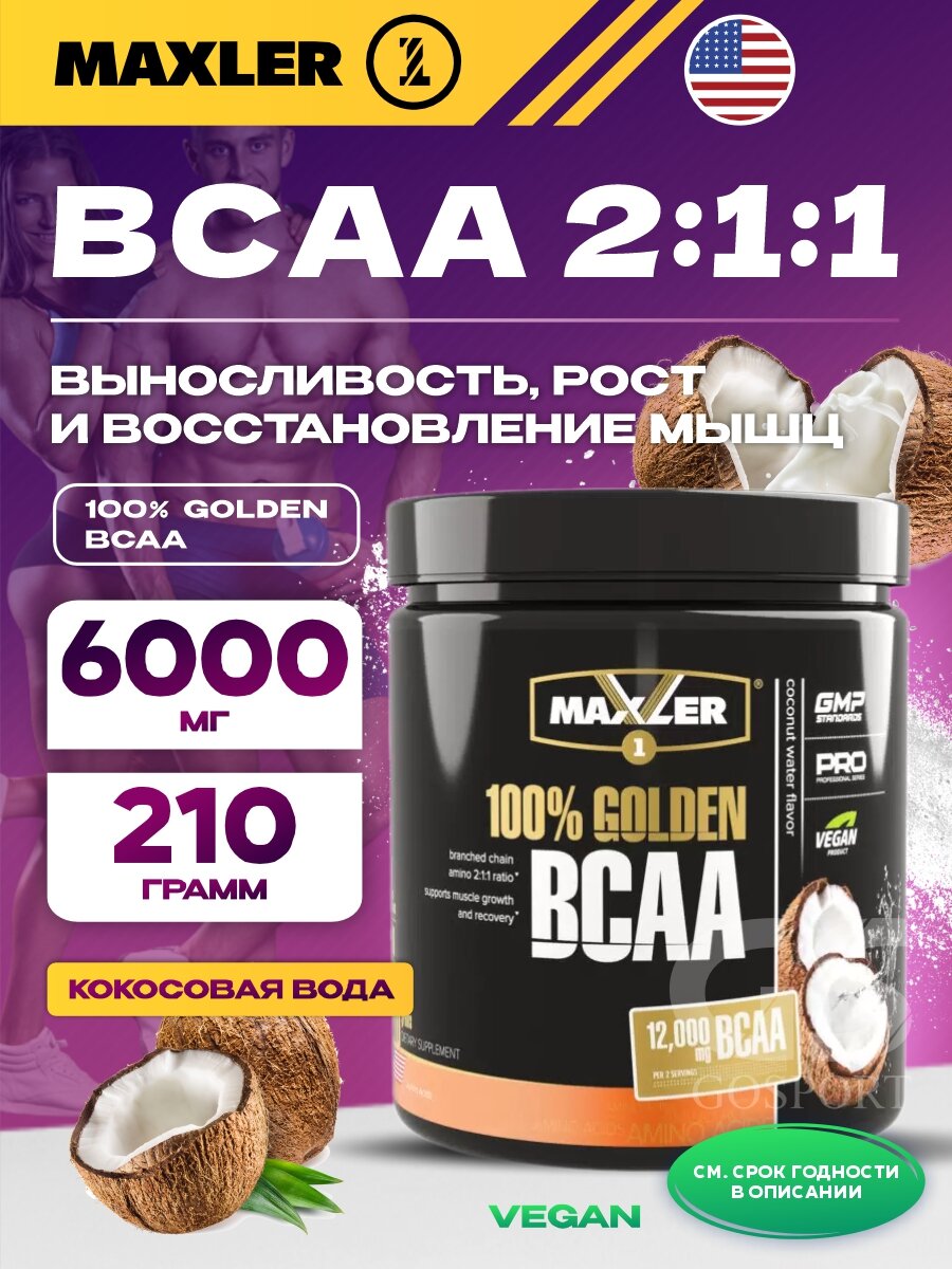 Купить BCAA Maxler 100% Golden, кокосовая вода, 210 гр.