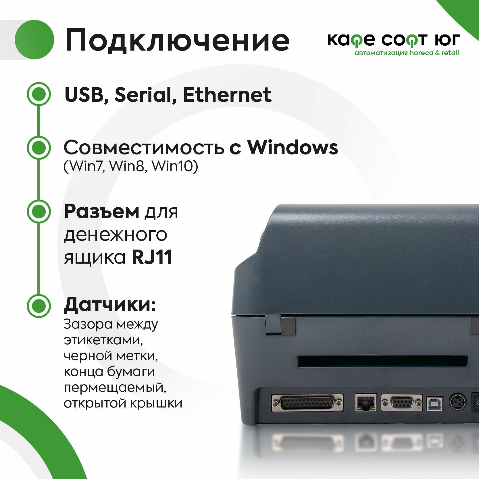 | Особенности | задание размера этикетки, с отделителем |