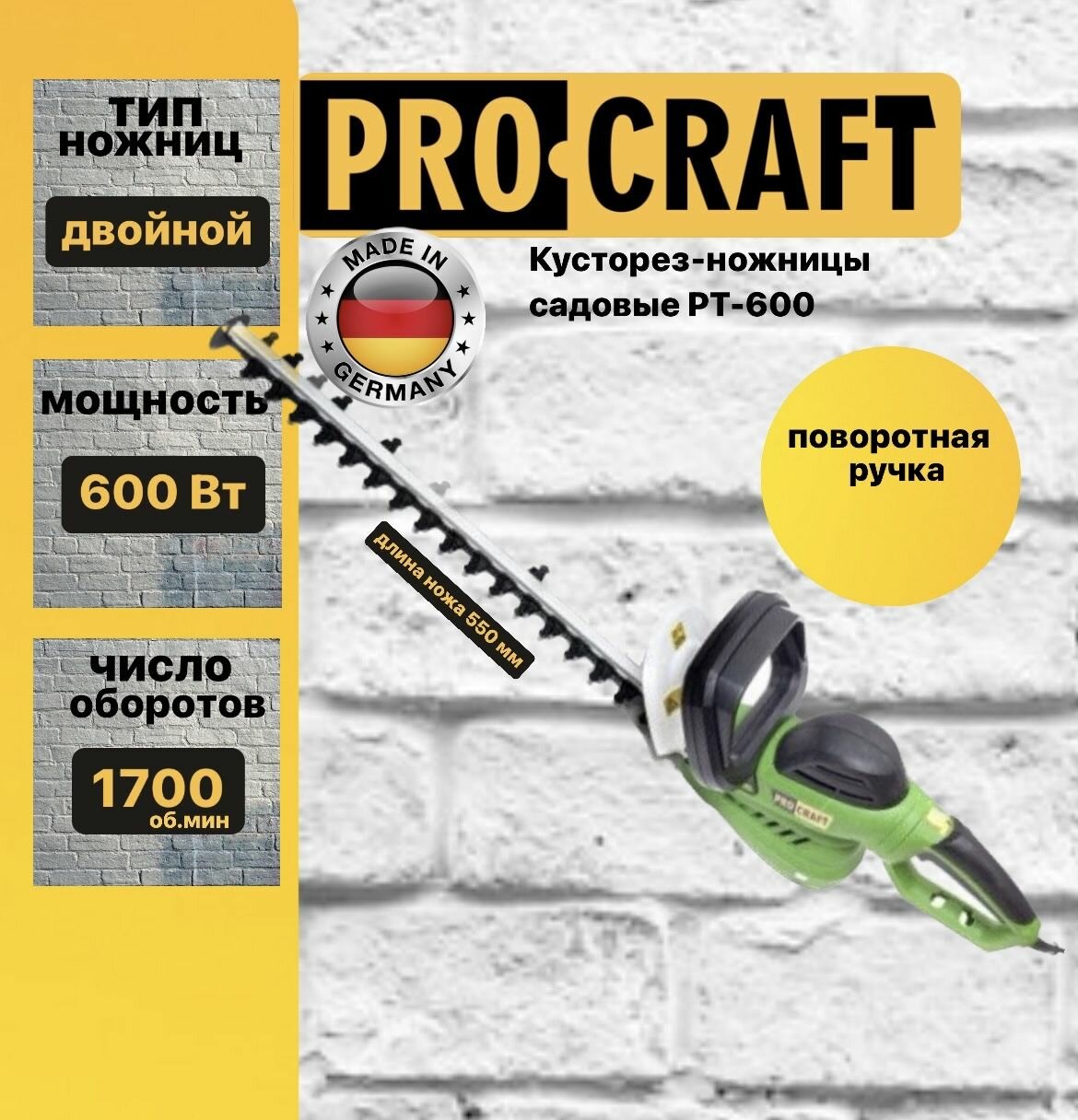 Ниже Вы можете прочитать отзывы на Кусторез электрический ProCraft PT600, ознакомится с подробными характеристиками, посмотреть интересные обзоры и фотографии на Кусторез электрический ProCraft PT600.