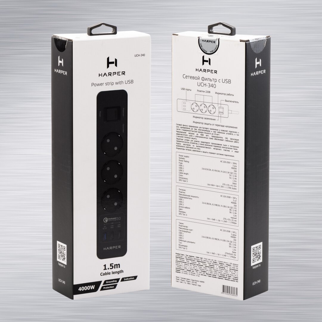 СохранитьСетевой фильтр с USB зарядкой HARPER UCH-340 Черный QC3.0 интересное: