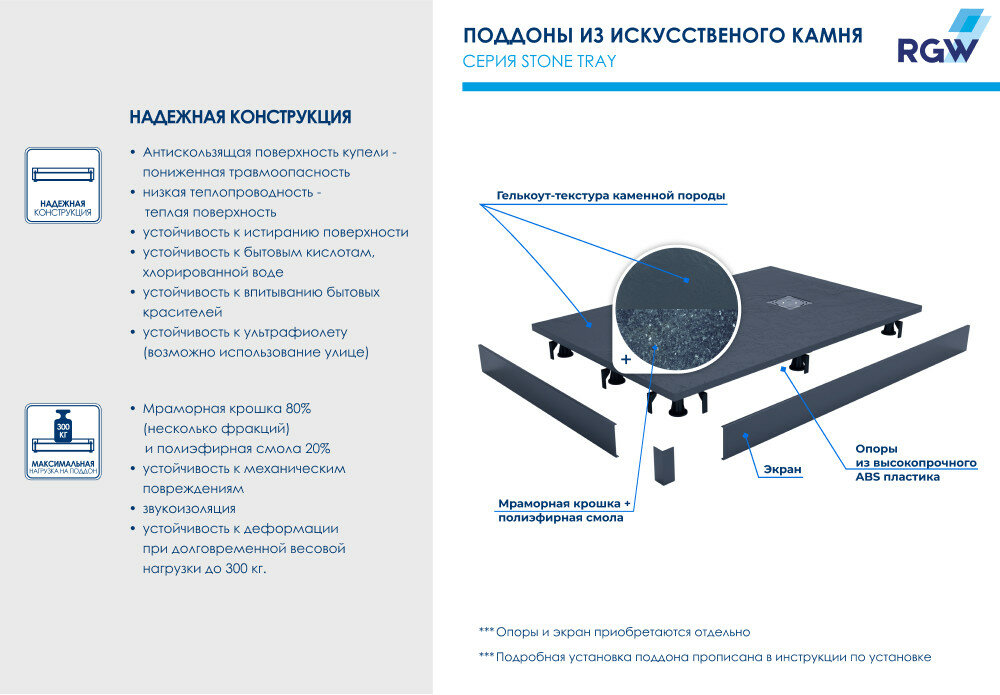 | Отзыв: | У меня такой поддон. Модель RGW ST выбрал за то, что она лучше мне подошла. Ну и материал у него отличный. |