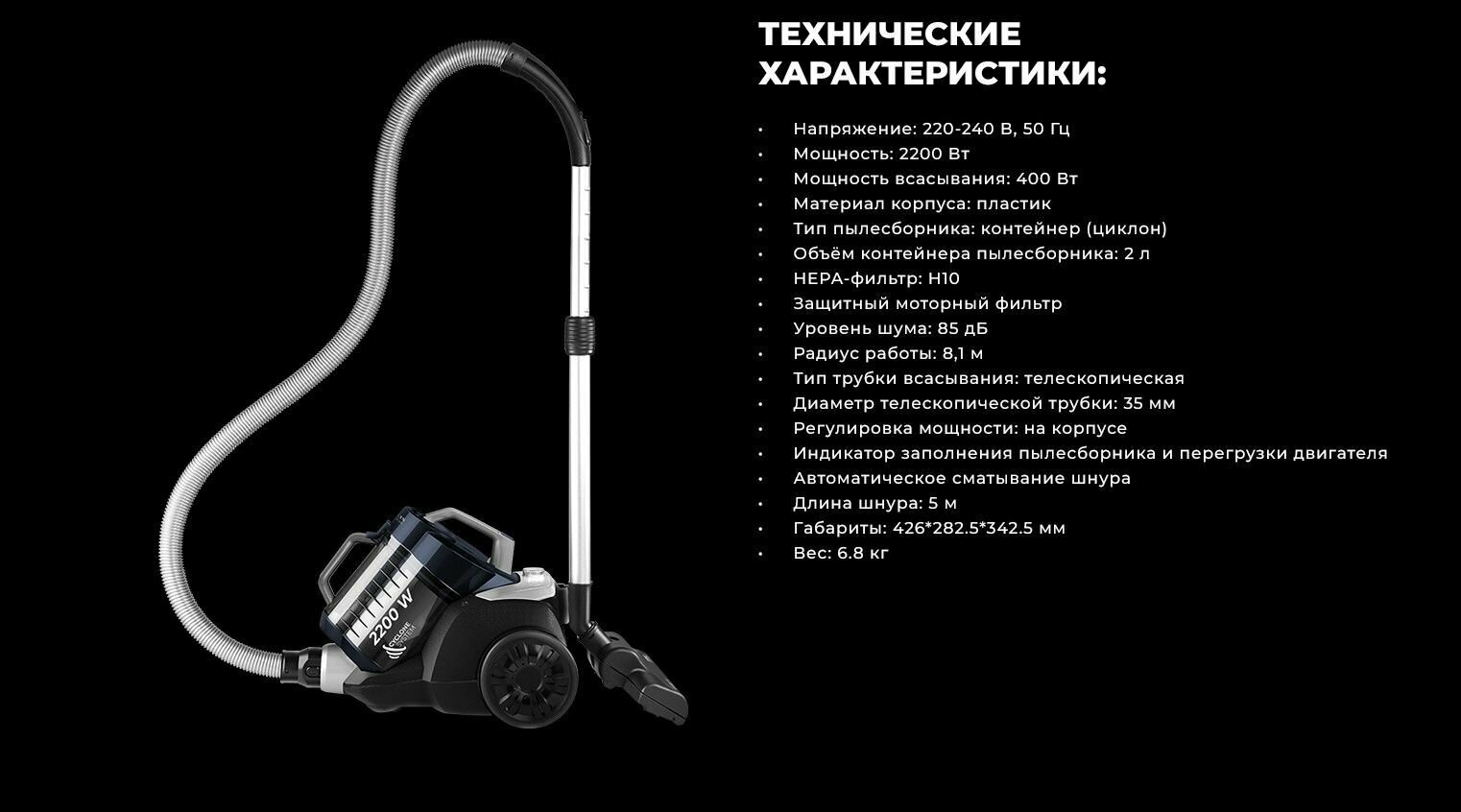 | Потребляемая мощность | 2200 Вт |