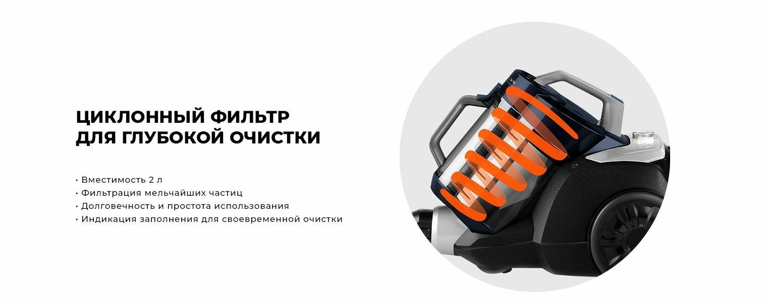| Особенности конструкции | индикатор заполнения пылесборника |