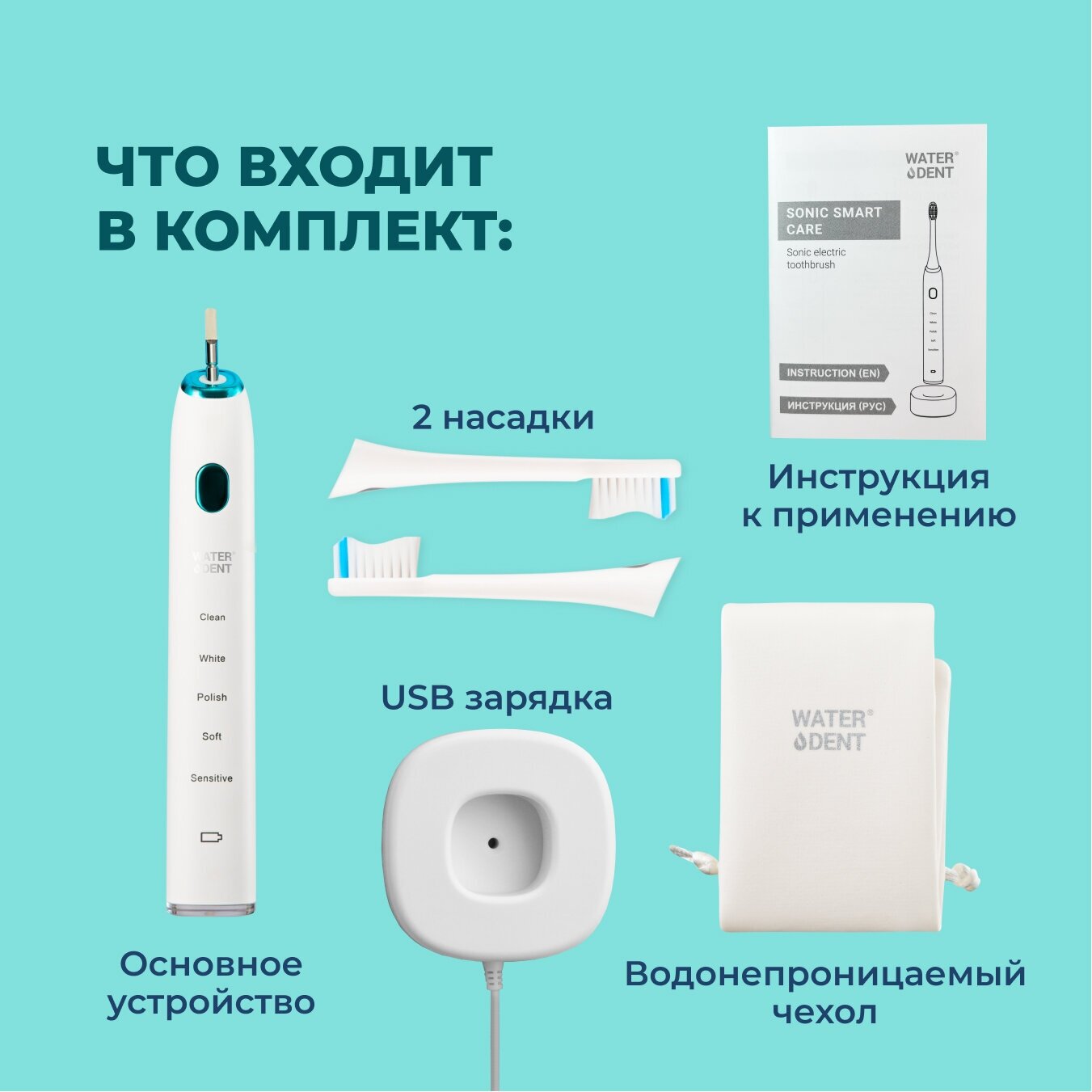 Звуковая электрическая зубная щетка WATERDENT SONIC SMART CARE интересное: