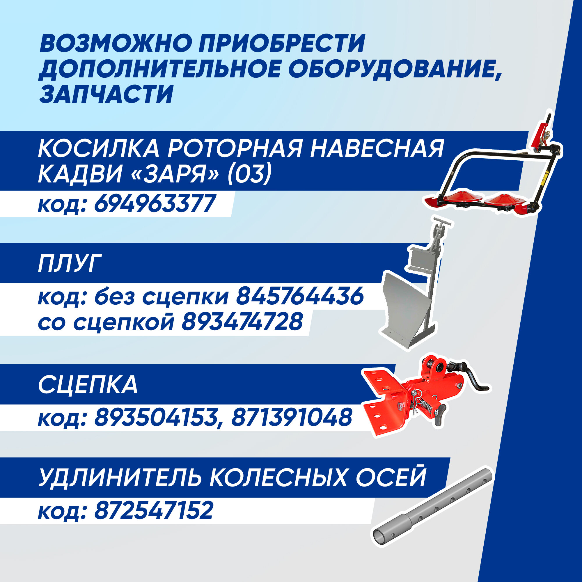 | Плюсы: | Простота и удобство в использовании, большой выбор навесного оборудования. |