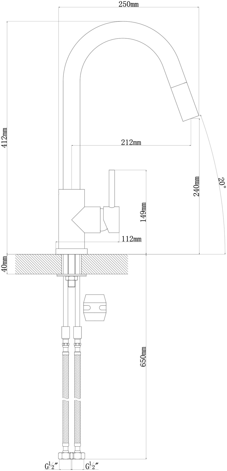 | Высота излива | 240 мм / 412 мм |