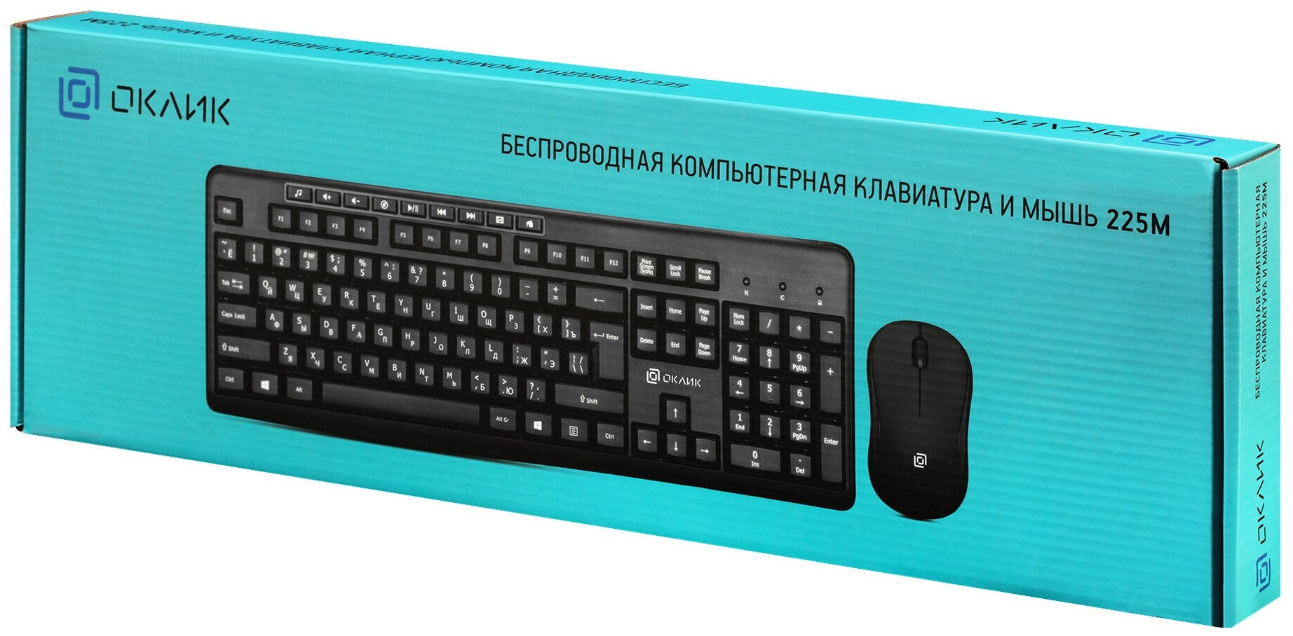 Компьютерный набор Oklick 225M, клавиатура, мышь, беспроводные, USB-коннектор, черные (1454537)