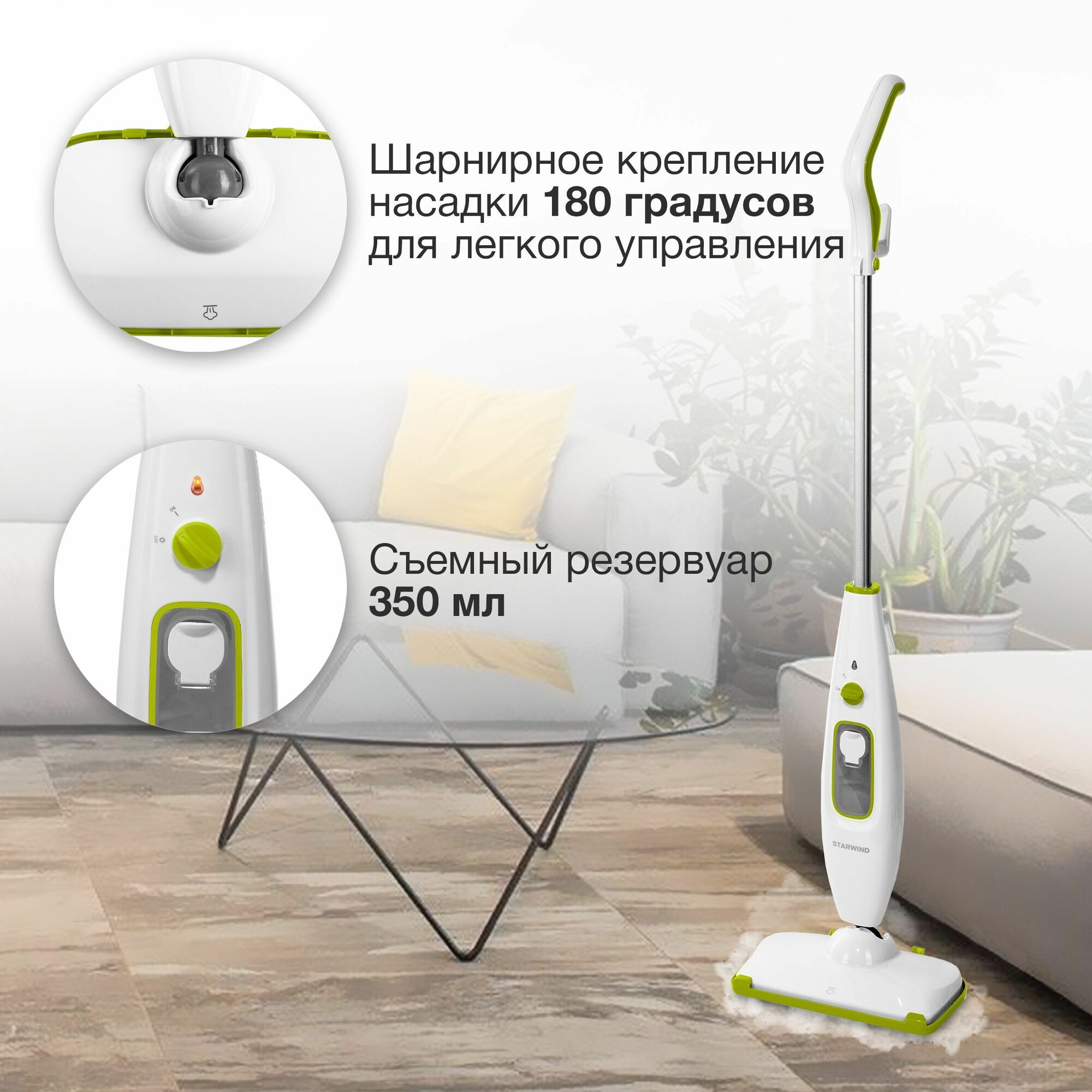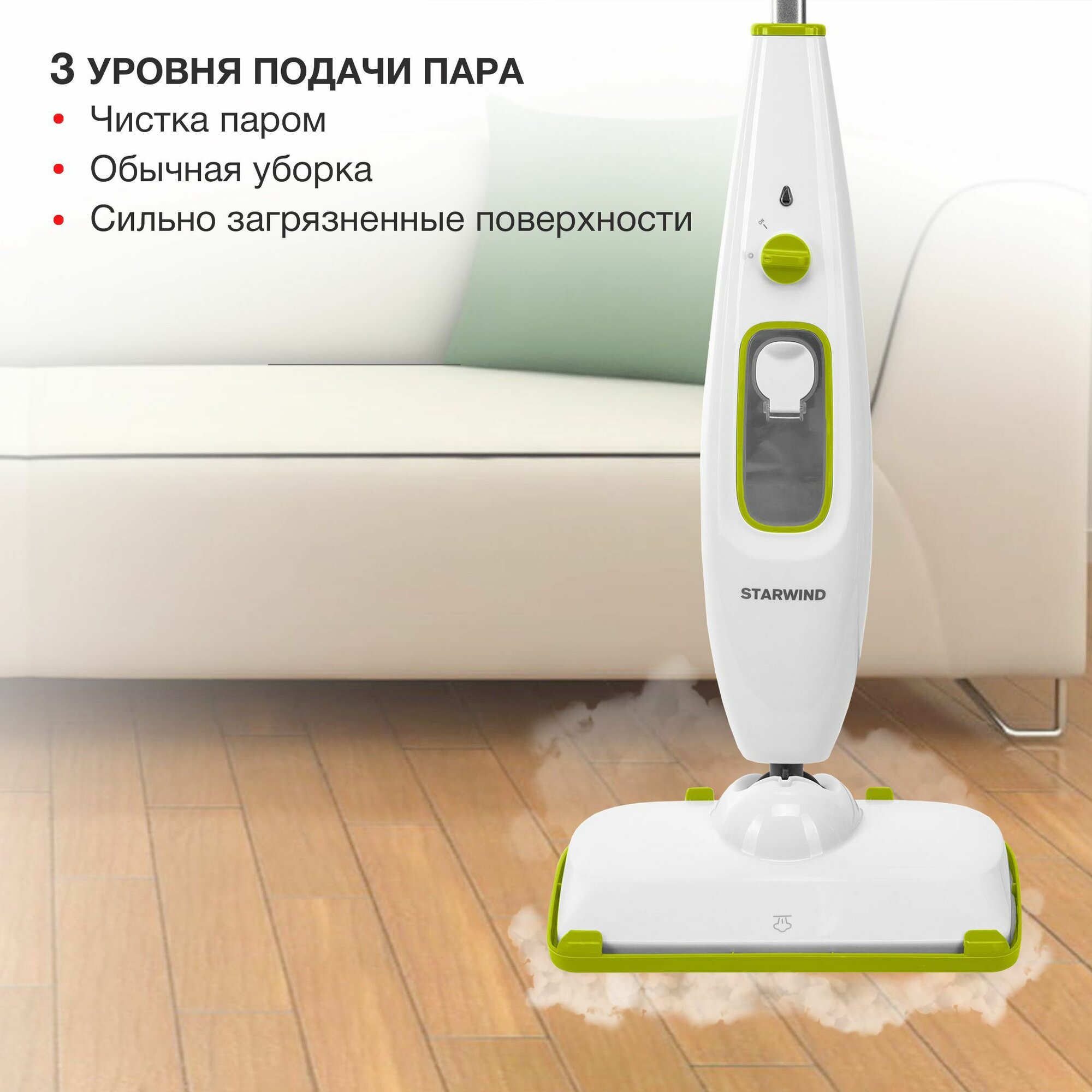 Швабра паровая Starwind SSM5330, белый/зеленый