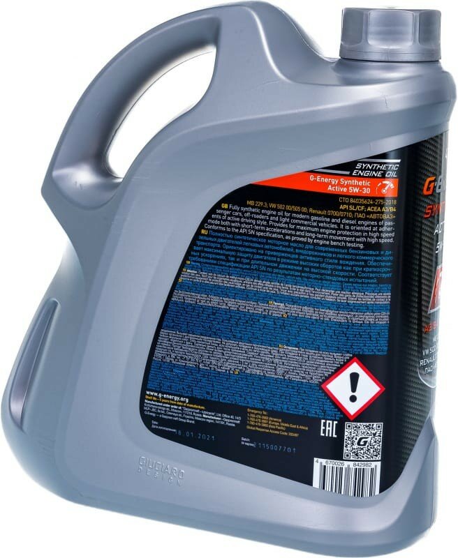 Gazpromneft G-Energy Synthetic Active 5w30 4 Л (253142405) интересное: