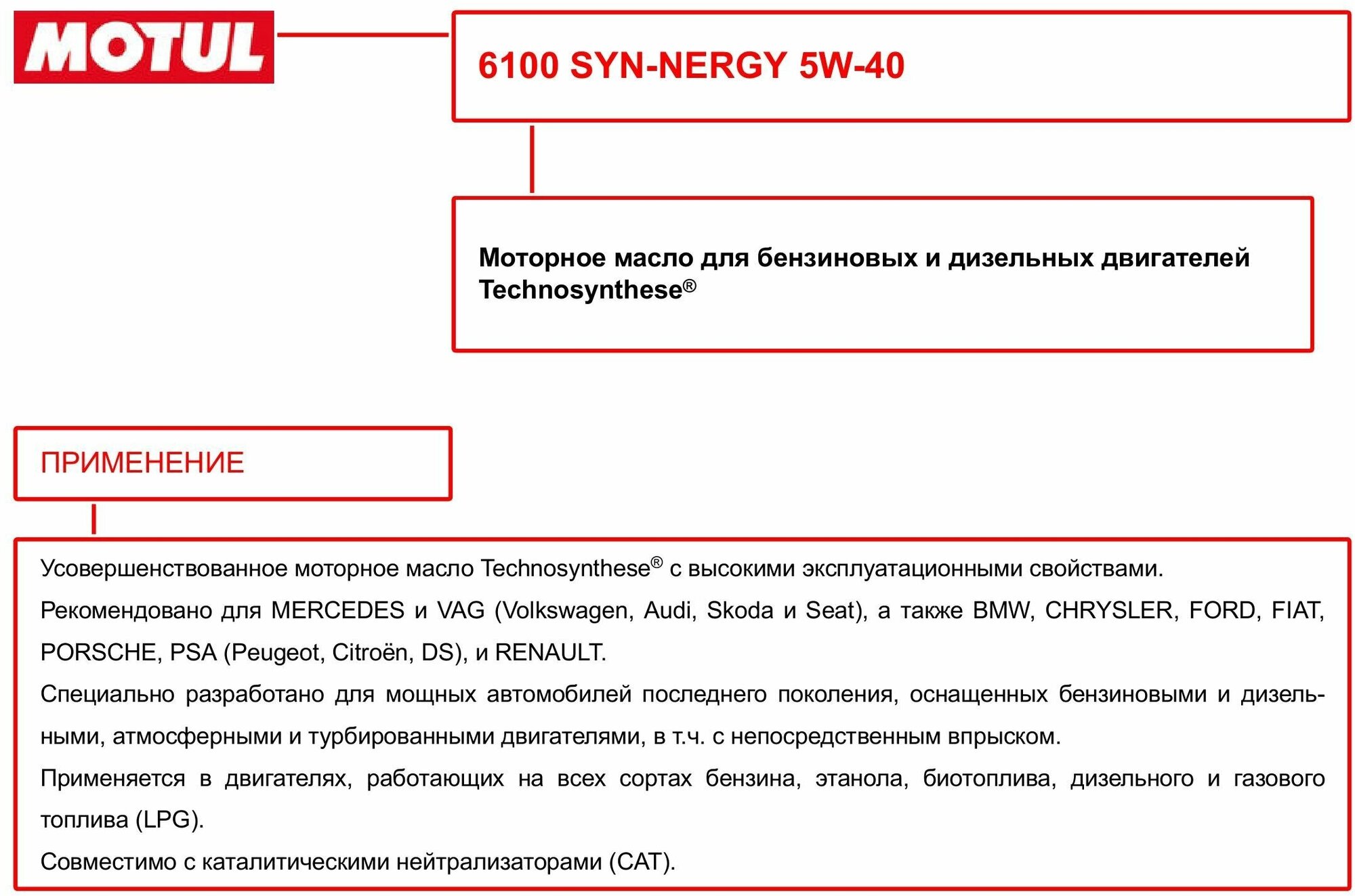 MOTUL 6100 SYN-NERGY 5W40 1л A3/B4,SN,WV502/505,MB229.5,LL-01 Моторное масло