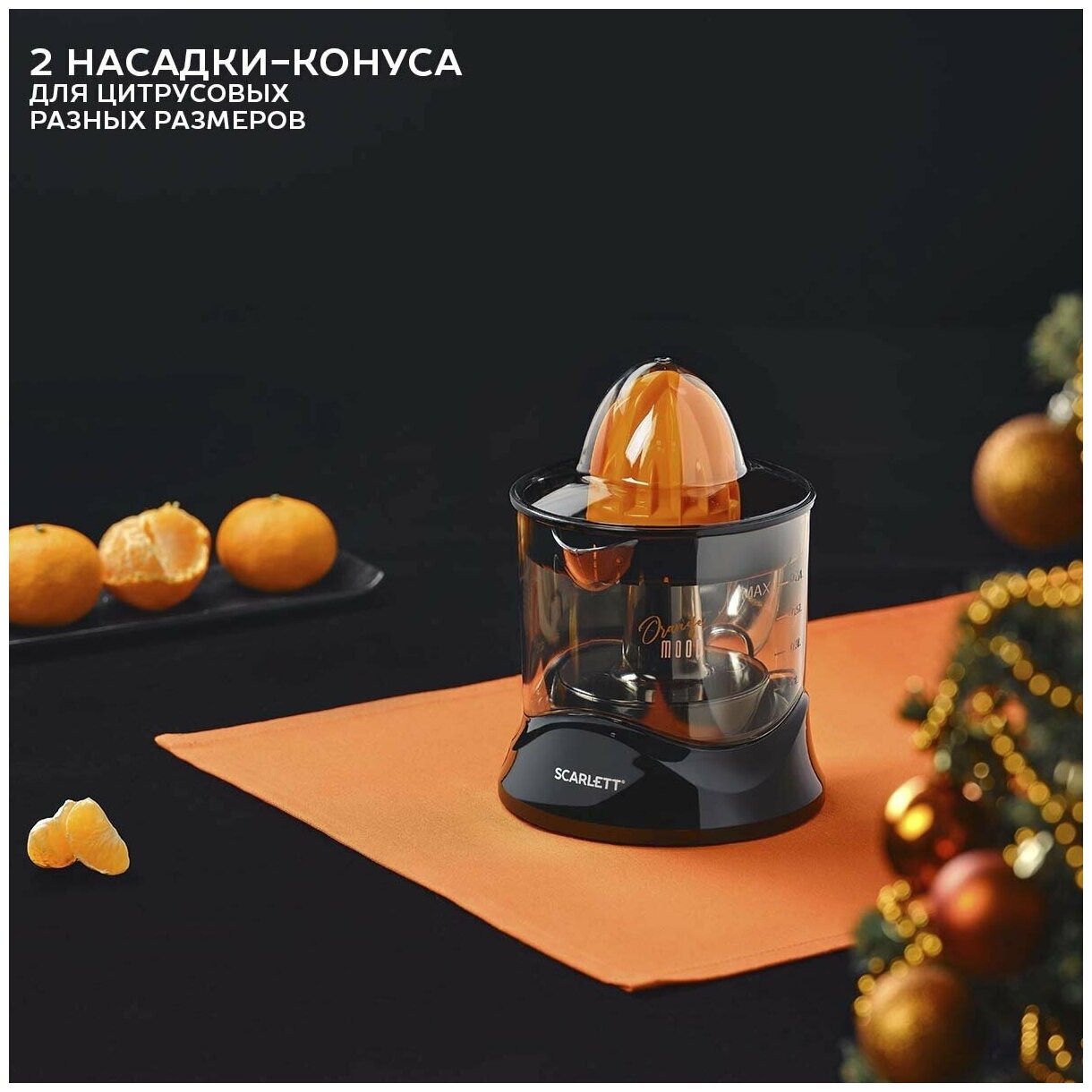 Соковыжималка цитрусовая SCARLETT SC-JE50C09, черный/оранжевый