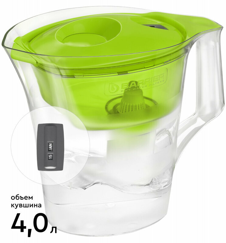 Фильтр-кувшин Барьер Чемпион 4.0л зеленое яблоко, для жесткой воды интересное: